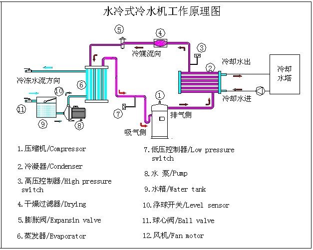 水冷式冷水機(jī)組工作原理圖