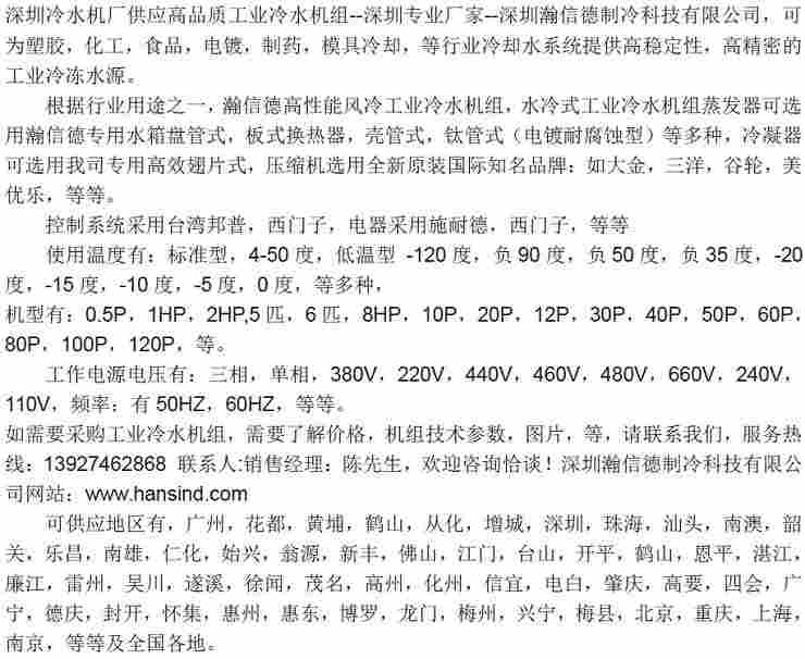 關鍵詞:深圳低溫工業(yè)冷水機組供應商首先深圳瀚信德制