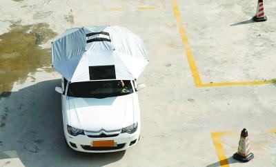 不開(kāi)空調(diào),又想讓學(xué)員們涼快點(diǎn),教練竟想出了給車子打傘避暑的稀奇方法。